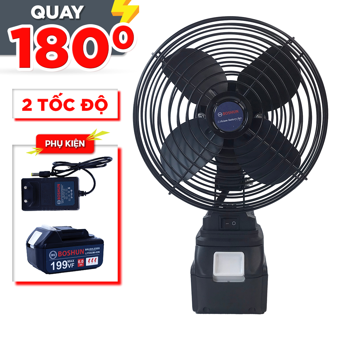Quạt tích điện dùng pin Lithium Boshun BS-Q1203 - Đường kính 8 inch (Chân pin phổ thông)
