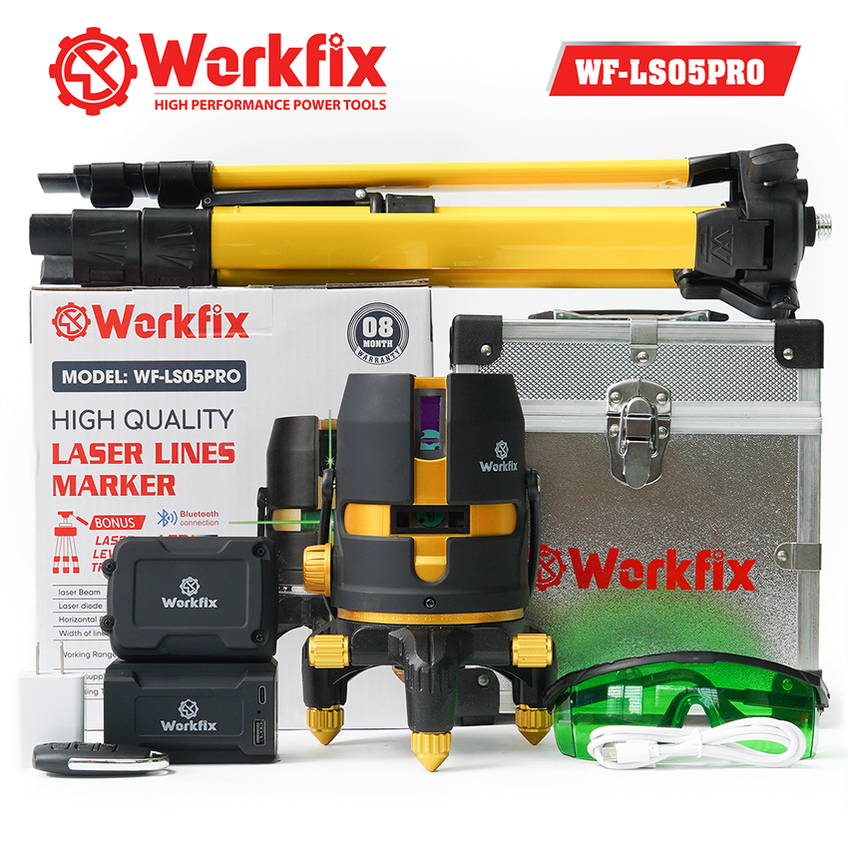 Máy cân bằng Laser 5 tia xanh Workfix WF-LS05PRO - Tầm xa 30m, Bluetooth